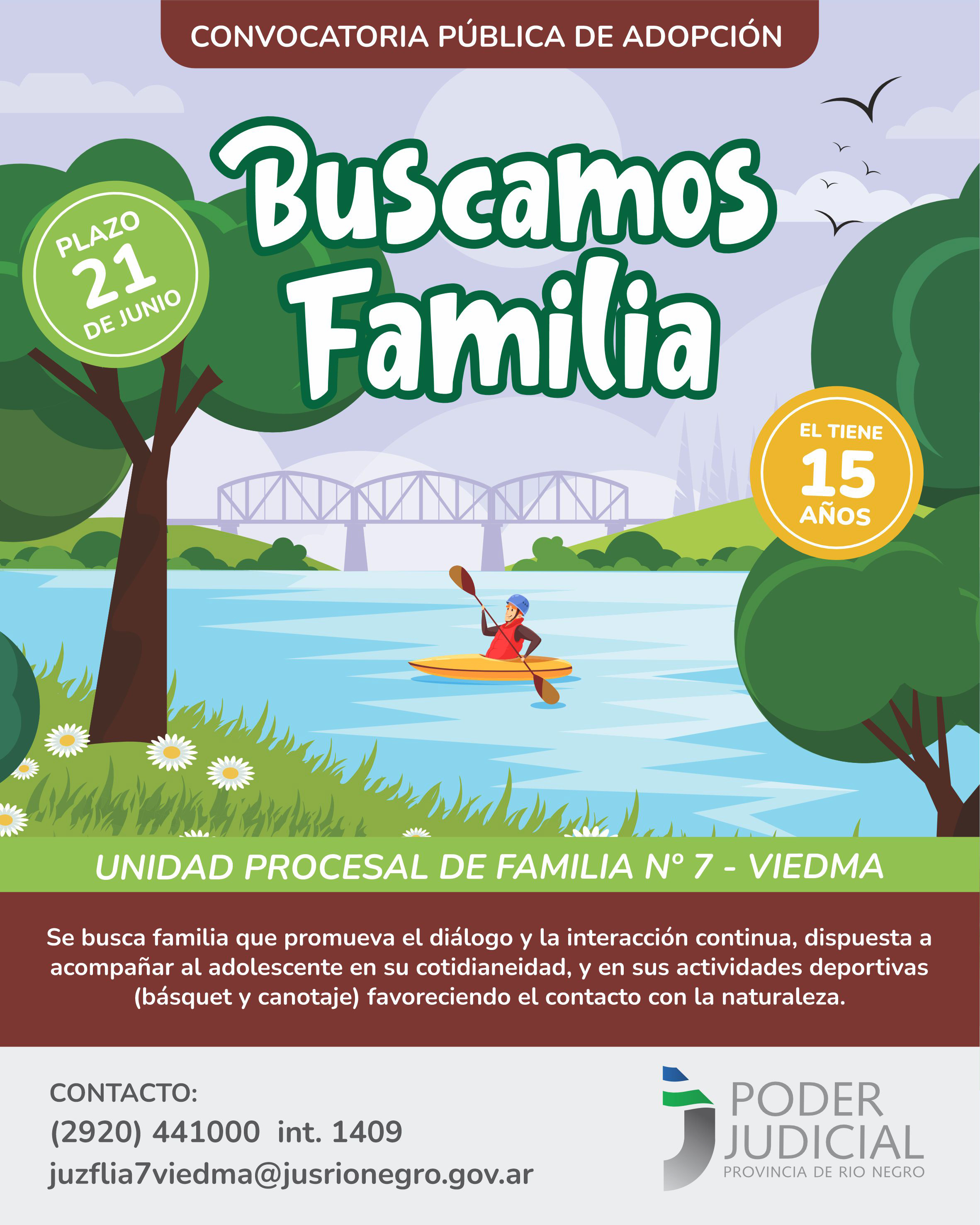 La Unidad Procesal N° 5 del Fuero de Familia de Cipolletti, Provincia de Río Negro, a través del Registro Único de Aspirantes a Guarda con Fines Adoptivos, convoca a familias que deseen adoptar a un adolescente de 13 años.