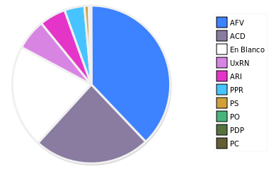 - Columna Porcentaje sobre Válidos no toma en cuenta los votos en blanco ni nulos (usado para D'Hondt de corresponder).