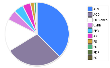 - Columna Porcentaje sobre Válidos no toma en cuenta los votos en blanco ni nulos (usado para D'Hondt de corresponder).