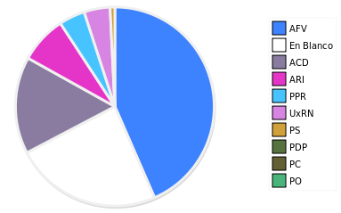 - Columna Porcentaje sobre Válidos no toma en cuenta los votos en blanco ni nulos (usado para D'Hondt de corresponder).