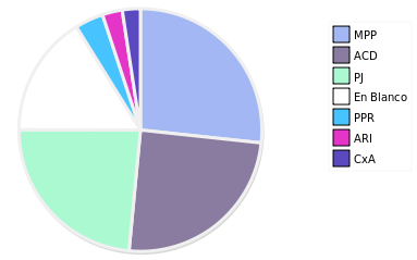 - Columna Porcentaje sobre Válidos no toma en cuenta los votos en blanco ni nulos (usado para D'Hondt de corresponder).