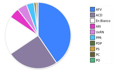 - Columna Porcentaje sobre Válidos no toma en cuenta los votos en blanco ni nulos (usado para D'Hondt de corresponder).