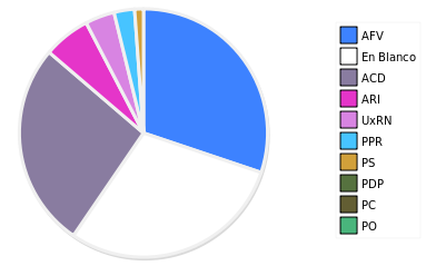 - Columna Porcentaje sobre Válidos no toma en cuenta los votos en blanco ni nulos (usado para D'Hondt de corresponder).