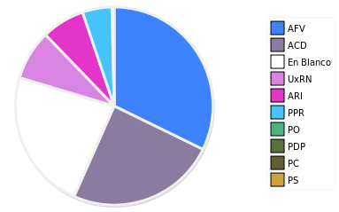 - Columna Porcentaje sobre Válidos no toma en cuenta los votos en blanco ni nulos (usado para D'Hondt de corresponder).