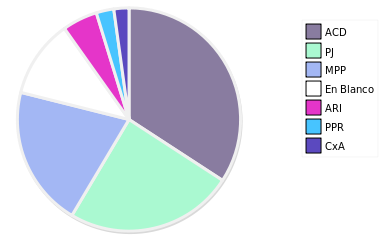 - Columna Porcentaje sobre Válidos no toma en cuenta los votos en blanco ni nulos (usado para D'Hondt de corresponder).