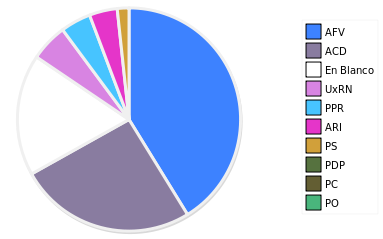 - Columna Porcentaje sobre Válidos no toma en cuenta los votos en blanco ni nulos (usado para D'Hondt de corresponder).
