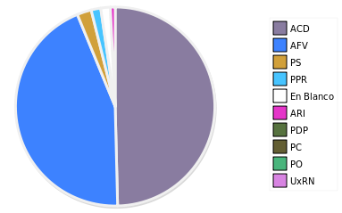 | 411 | ALIANZA CONCERTACION PARA EL DESARROLLO | 64 | 49.61% | -- | 50.39% |