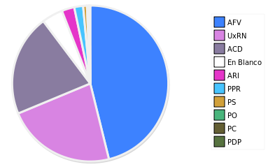 - Columna Porcentaje sobre Válidos no toma en cuenta los votos en blanco ni nulos (usado para D'Hondt de corresponder).