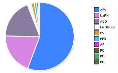 - Columna Porcentaje sobre Válidos no toma en cuenta los votos en blanco ni nulos (usado para D'Hondt de corresponder).