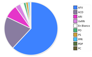 - Columna Porcentaje sobre Válidos no toma en cuenta los votos en blanco ni nulos (usado para D'Hondt de corresponder).