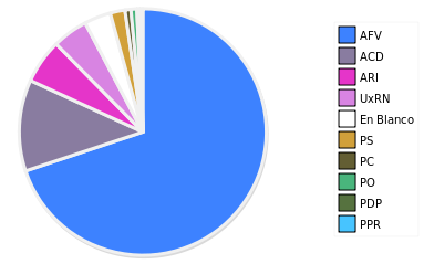- Columna Porcentaje sobre Válidos no toma en cuenta los votos en blanco ni nulos (usado para D'Hondt de corresponder).