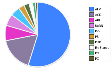 - Columna Porcentaje sobre Válidos no toma en cuenta los votos en blanco ni nulos (usado para D'Hondt de corresponder).