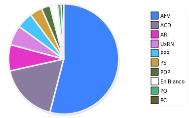 - Columna Porcentaje sobre Válidos no toma en cuenta los votos en blanco ni nulos (usado para D'Hondt de corresponder).