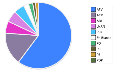 - Columna Porcentaje sobre Válidos no toma en cuenta los votos en blanco ni nulos (usado para D'Hondt de corresponder).