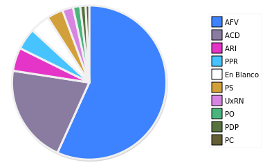 - Columna Porcentaje sobre Válidos no toma en cuenta los votos en blanco ni nulos (usado para D'Hondt de corresponder).