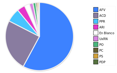 - Columna Porcentaje sobre Válidos no toma en cuenta los votos en blanco ni nulos (usado para D'Hondt de corresponder).