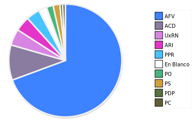 - Columna Porcentaje sobre Válidos no toma en cuenta los votos en blanco ni nulos (usado para D'Hondt de corresponder).