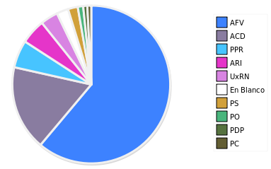 - Columna Porcentaje sobre Válidos no toma en cuenta los votos en blanco ni nulos (usado para D'Hondt de corresponder).