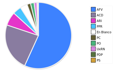 - Columna Porcentaje sobre Válidos no toma en cuenta los votos en blanco ni nulos (usado para D'Hondt de corresponder).