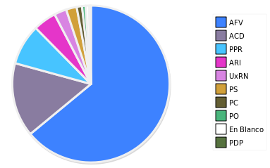 - Columna Porcentaje sobre Válidos no toma en cuenta los votos en blanco ni nulos (usado para D'Hondt de corresponder).