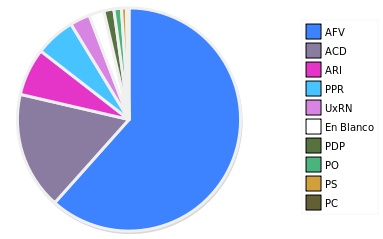 - Columna Porcentaje sobre Válidos no toma en cuenta los votos en blanco ni nulos (usado para D'Hondt de corresponder).