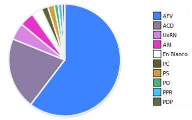 - Columna Porcentaje sobre Válidos no toma en cuenta los votos en blanco ni nulos (usado para D'Hondt de corresponder).