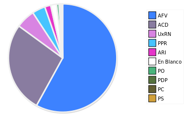 - Columna Porcentaje sobre Válidos no toma en cuenta los votos en blanco ni nulos (usado para D'Hondt de corresponder).
