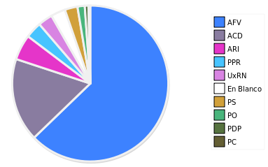 - Columna Porcentaje sobre Válidos no toma en cuenta los votos en blanco ni nulos (usado para D'Hondt de corresponder).