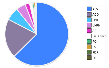 - Columna Porcentaje sobre Válidos no toma en cuenta los votos en blanco ni nulos (usado para D'Hondt de corresponder).