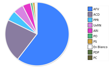 - Columna Porcentaje sobre Válidos no toma en cuenta los votos en blanco ni nulos (usado para D'Hondt de corresponder).