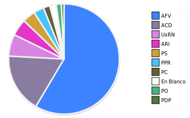 - Columna Porcentaje sobre Válidos no toma en cuenta los votos en blanco ni nulos (usado para D'Hondt de corresponder).