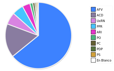 - Columna Porcentaje sobre Válidos no toma en cuenta los votos en blanco ni nulos (usado para D'Hondt de corresponder).