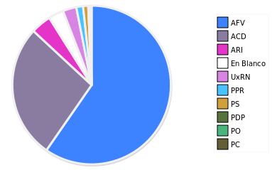 - Columna Porcentaje sobre Válidos no toma en cuenta los votos en blanco ni nulos (usado para D'Hondt de corresponder).
