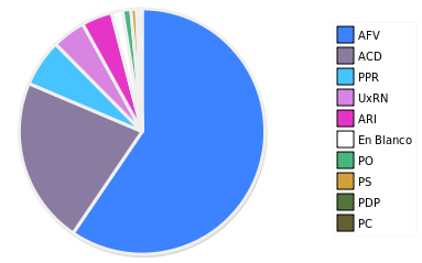 - Columna Porcentaje sobre Válidos no toma en cuenta los votos en blanco ni nulos (usado para D'Hondt de corresponder).