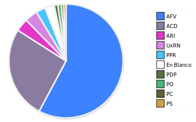 - Columna Porcentaje sobre Válidos no toma en cuenta los votos en blanco ni nulos (usado para D'Hondt de corresponder).