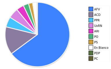 - Columna Porcentaje sobre Válidos no toma en cuenta los votos en blanco ni nulos (usado para D'Hondt de corresponder).