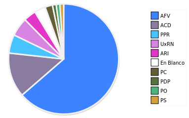 - Columna Porcentaje sobre Válidos no toma en cuenta los votos en blanco ni nulos (usado para D'Hondt de corresponder).