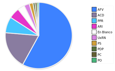 - Columna Porcentaje sobre Válidos no toma en cuenta los votos en blanco ni nulos (usado para D'Hondt de corresponder).