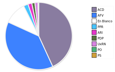 - Columna Porcentaje sobre Válidos no toma en cuenta los votos en blanco ni nulos (usado para D'Hondt de corresponder).