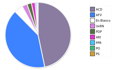 | 411 | ALIANZA CONCERTACION PARA EL DESARROLLO | 129 | 46.40% | -- | 48.86% |