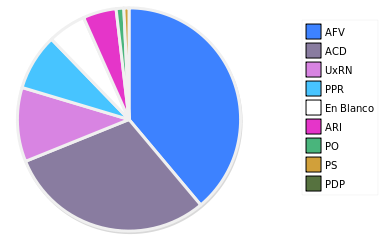 - Columna Porcentaje sobre Válidos no toma en cuenta los votos en blanco ni nulos (usado para D'Hondt de corresponder).