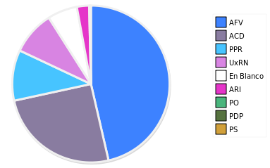 - Columna Porcentaje sobre Válidos no toma en cuenta los votos en blanco ni nulos (usado para D'Hondt de corresponder).