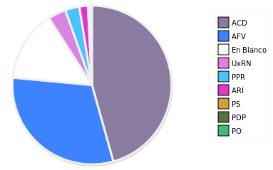 - Columna Porcentaje sobre Válidos no toma en cuenta los votos en blanco ni nulos (usado para D'Hondt de corresponder).