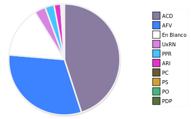 - Columna Porcentaje sobre Válidos no toma en cuenta los votos en blanco ni nulos (usado para D'Hondt de corresponder).
