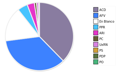 - Columna Porcentaje sobre Válidos no toma en cuenta los votos en blanco ni nulos (usado para D'Hondt de corresponder).