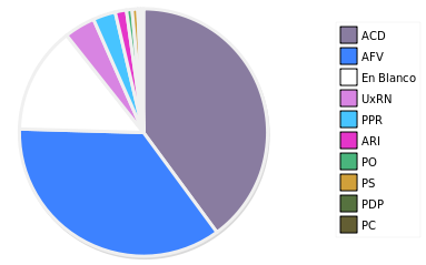 | 411 | ALIANZA CONCERTACION PARA EL DESARROLLO | 109 | 39.49% | -- | 46.38% |