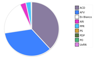 - Columna Porcentaje sobre Válidos no toma en cuenta los votos en blanco ni nulos (usado para D'Hondt de corresponder).