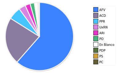 - Columna Porcentaje sobre Válidos no toma en cuenta los votos en blanco ni nulos (usado para D'Hondt de corresponder).