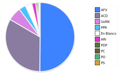 - Columna Porcentaje sobre Válidos no toma en cuenta los votos en blanco ni nulos (usado para D'Hondt de corresponder).