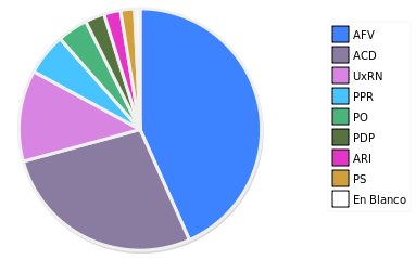 - Columna Porcentaje sobre Válidos no toma en cuenta los votos en blanco ni nulos (usado para D'Hondt de corresponder).